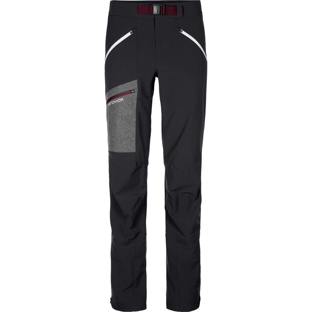 Tasmanische Merinowolle mit einer Rippenstruktur auf der Innenseite sorgt für gute Isolation und ein angenehmes Gefühl beim Tragen. Von außen ist die Skitourenhose dabei abriebfest und macht dank elastischem Zwei-Wege-Stretch Material jede Bewegung mit.