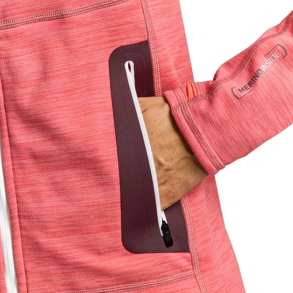 Ob beim Klettern, auf Hochtour oder beim Bergsteigen – wir mögen Begleiter, die alles mitmachen. Die MERINO FLEECE LIGHT Linie ist daher widerstandsfähig, leicht und dank der feinen tasmanischen Merinowolle angenehm auf der Haut. Technische Features wie die rucksackoptimierten Fronttaschen mit gebondetem Rahmen oder den optimal abschließenden Daumenschlaufen macht die schlichte FLEECE LIGHT HOODY für Damen zu einer idealen zweiten Lage – in jeder Jahreszeit. Bei Anstrengung sorgt die feine tasmanische Merinowolle sowie die Waffelstruktur auf der Innenseite für einen guten Feuchtigkeitstransport und ein trockenes Gefühl auf der Haut. Gleichzeitig ist das Material extrem atmungsaktiv, schnell trocknend und weist ein hohes Stretchvermögen auf. Die Außenseite ist glatt, wodurch das Material weniger Angriffsfläche bietet.