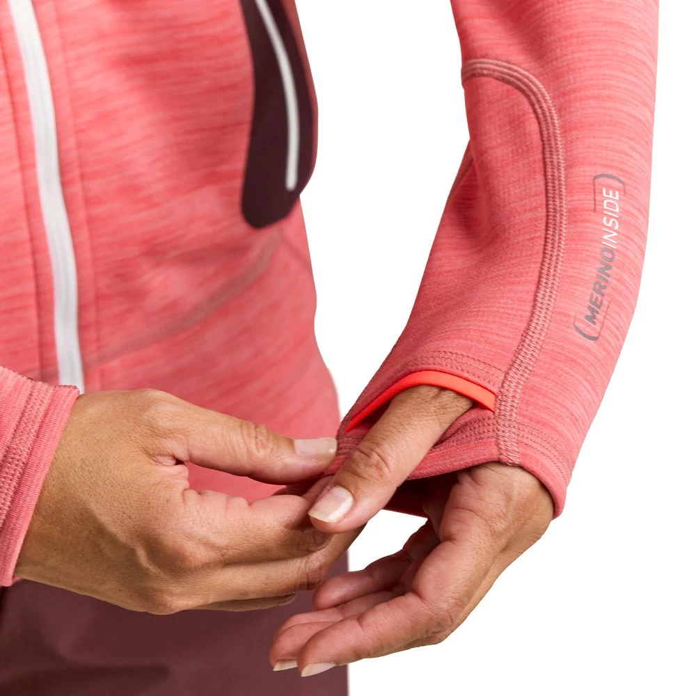 In den MERINO FLEECE Linien verwendet ORTOVOX feinste Merinowolle auf der Innenseite zusammen mit Polyester auf der Außenseite. Elastan macht das Material zusätzlich dehnbar. Damit ist die Linie sehr elastisch, widerstandsfähig und bietet durch die angeraute Merinowolle einen hervorragenden Klimakomfort und Atmungsaktivität.