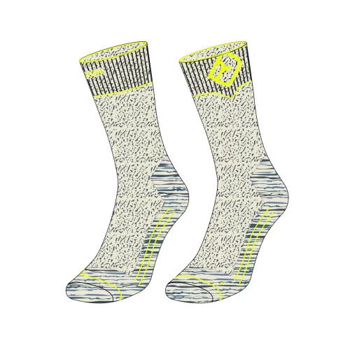 Dafür sorgt die Kombination aus feiner Merinowolle innen und recyceltem Polyamid außen, die ihre Vorteile an den richtigen Stellen einbringen. Auf der Außenseite schützt die Kunstfaser vor Abrieb durch den Schuh, während die feine Merinowolle auf der Innenseite temperatur- und feuchtigkeitsregulierend wirkt und für ein angenehmes Fußklima sorgt.