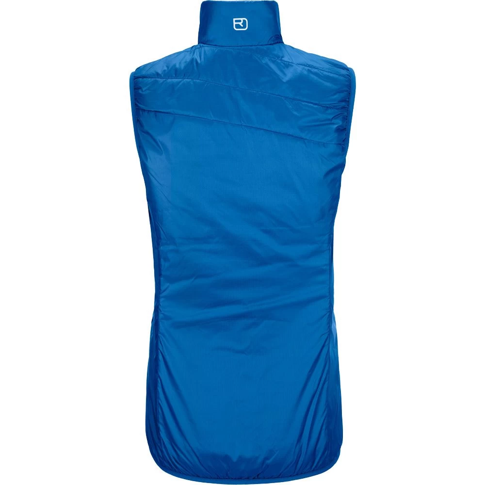 Mit ihrem elastischen Saum passt sich die leichte Isolationsweste optimal an den Körper an. Für mehr Komfort und warme Hände sorgen Merino-Mesh-Einsätze in den großen Fronttaschen. Die gebondete Brusttasche ist rucksackkompatibel und bietet auf Skitour ausreichend Stauraum für Karte oder Riegel.