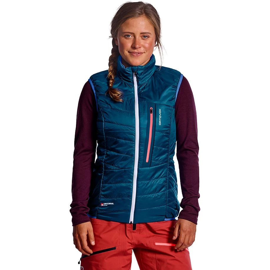 Mit der SWISSWOOL PIZ GRISCH VEST für Damen bist Du für jede noch so anstrengende Skitour bestens gewappnet.